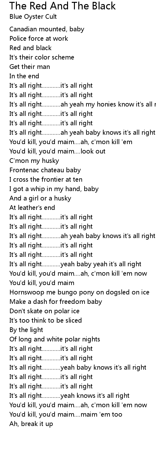 It's all right............yeah knows it's all right |