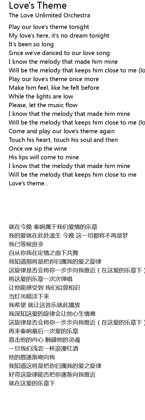 Will be the melody that keeps him close to me (love's theme) |
