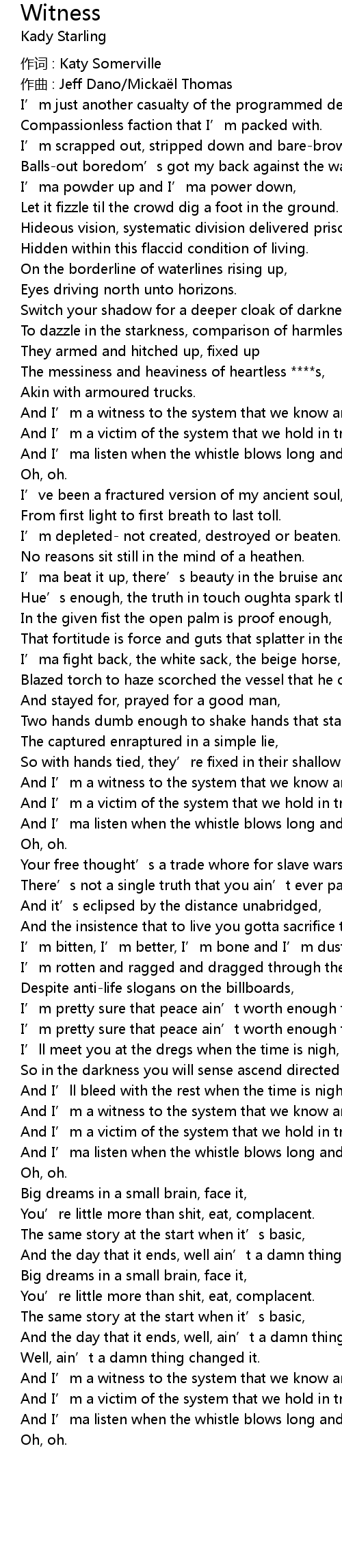 | Song | Witness |