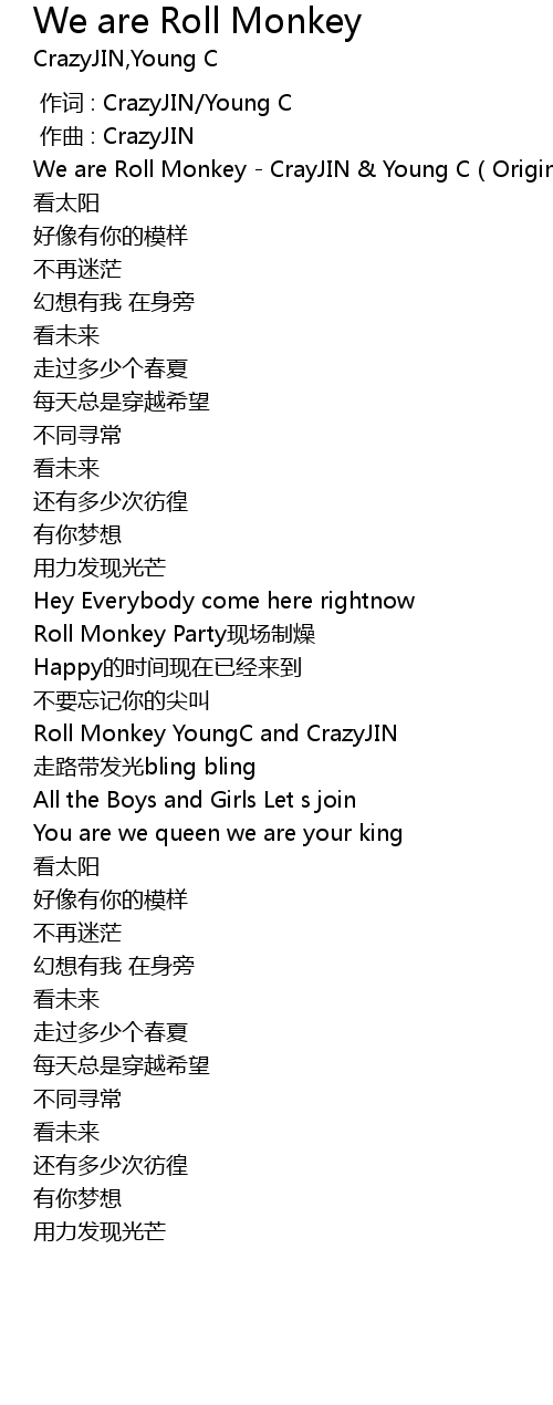 | [01:28.150] | Roll Monkey YoungC and CrazyJIN |
