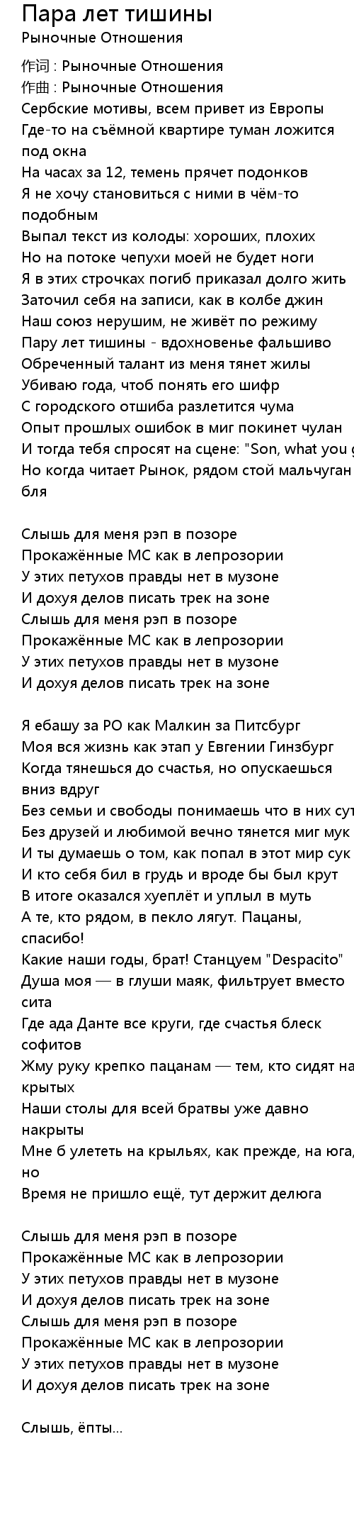 作词 : Рыночные Отношения |