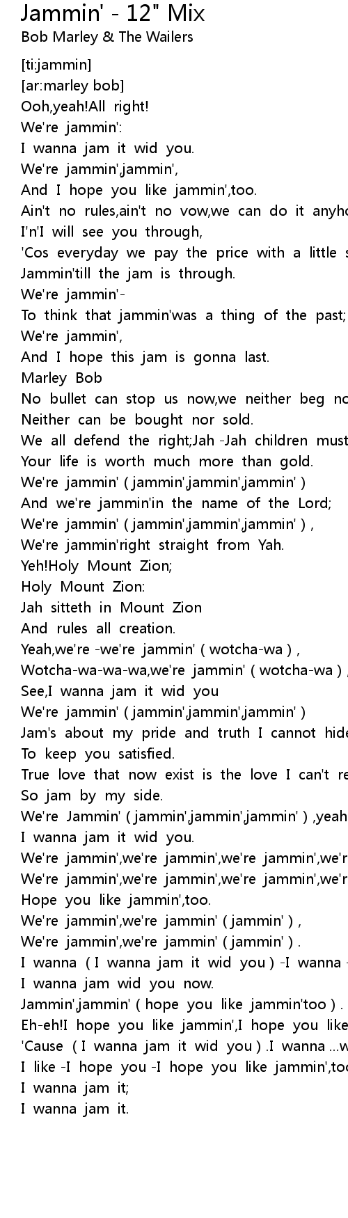 | [02:48.201] | Jammin', jammin' hope you like jammin' too. |