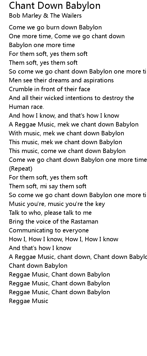 So come we go chant down Babylon one more time |