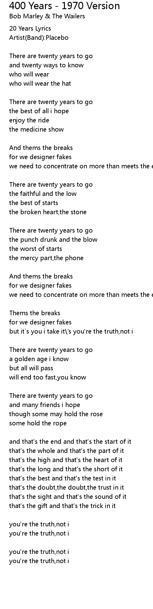 | 20 Years Lyrics | |