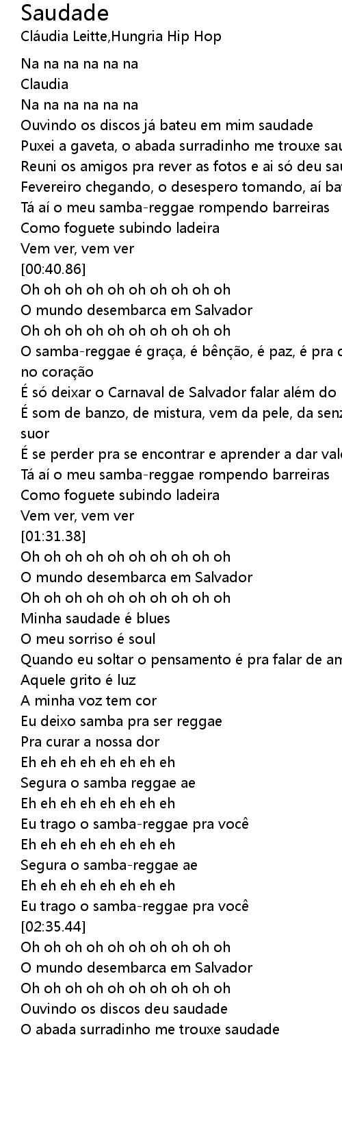 | [01:22.01] | Ta ai o meu sambareggae rompendo barreiras |
