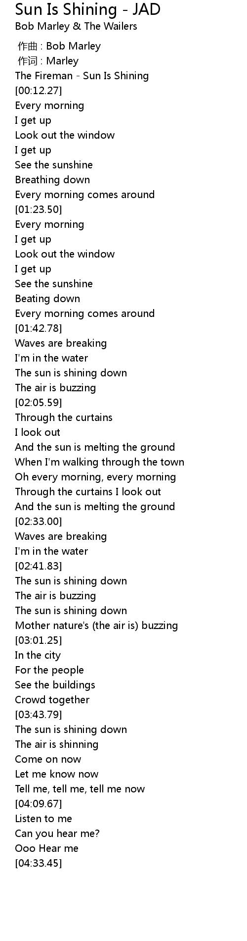 | [03:45.92] | The sun is shining down |