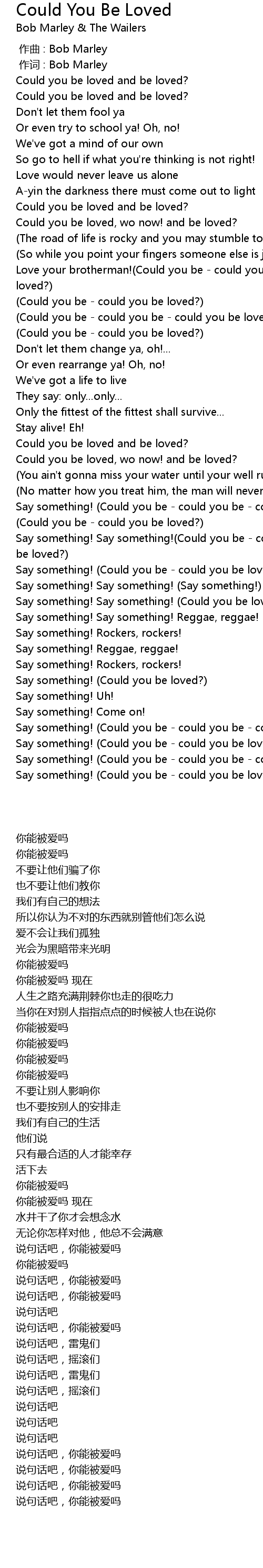 | [03:03.10] | Say something! (Could you be - could you be - could you be loved?) |