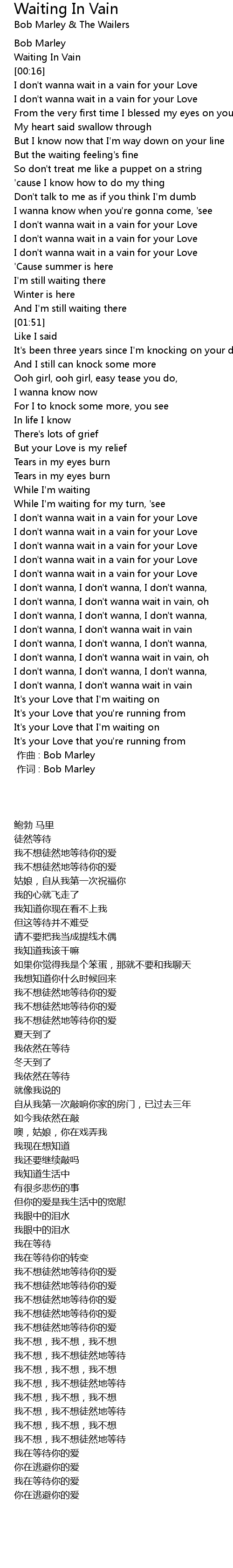 | [00:00.00] | 作词 : Bob Marley |