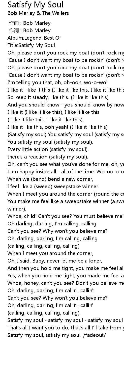 | [04:17.83] | Satisfy my soul, satisfy my soul. fadeout |