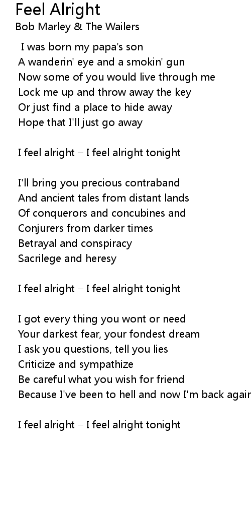 | I feel alright – I feel alright tonight | |
