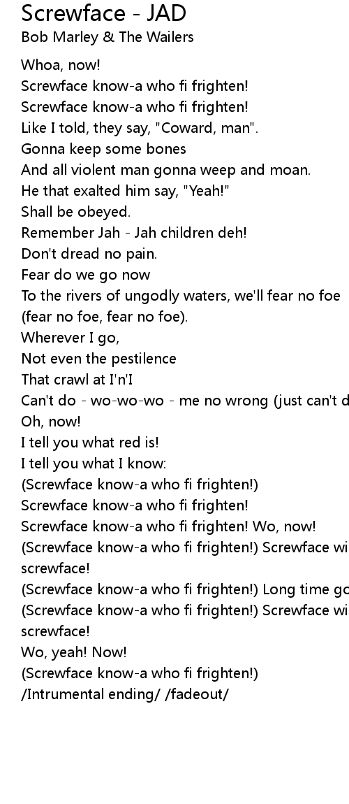 (Screwface know-a who fi frighten!) Screwface will frighten |