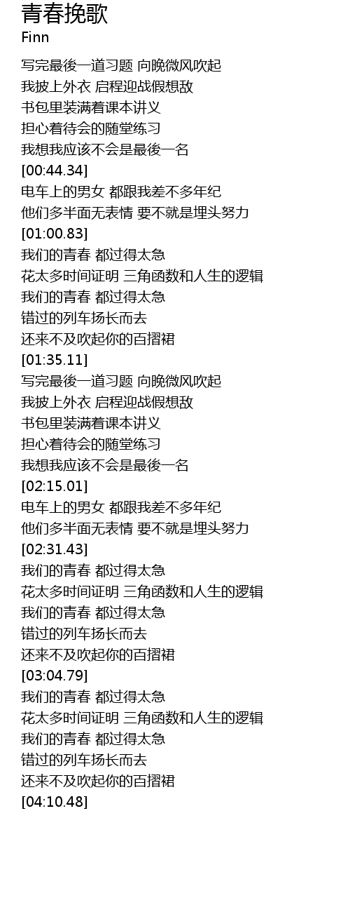 | [01:46.24] | 写完最後一道习题 向晚微风吹起 |