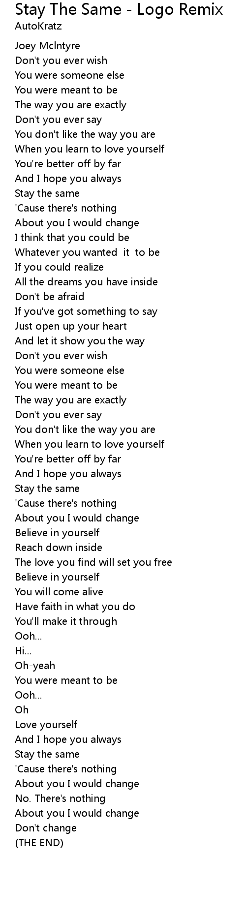 You don't like the way you are |
