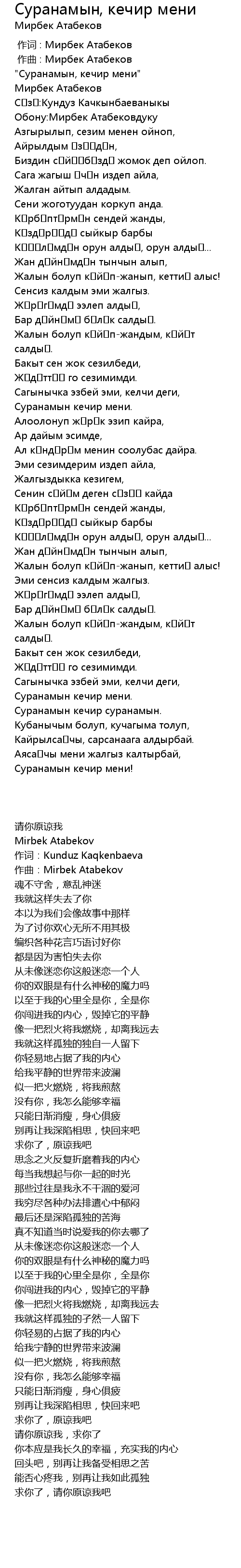 作词 : Мирбек Атабеков |