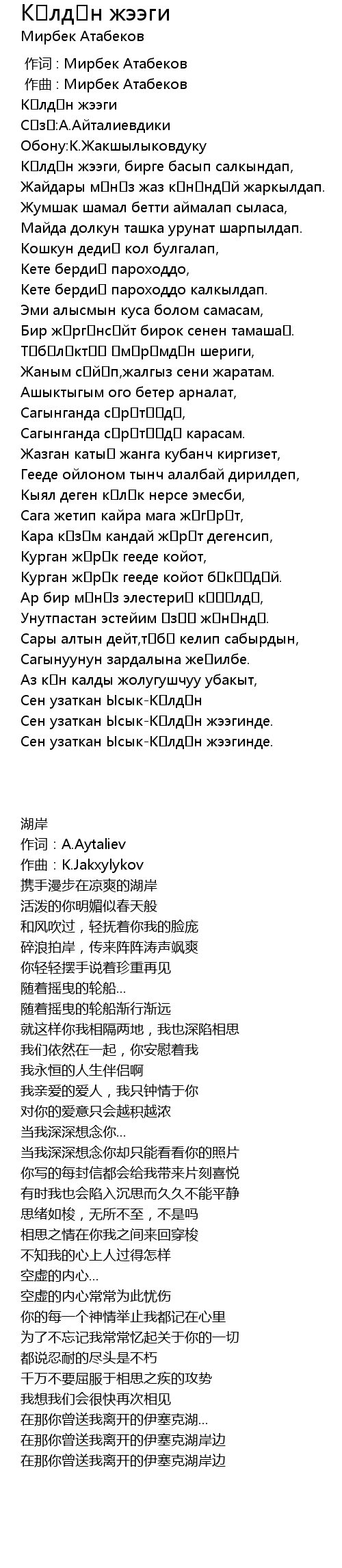 作词 : Мирбек Атабеков |