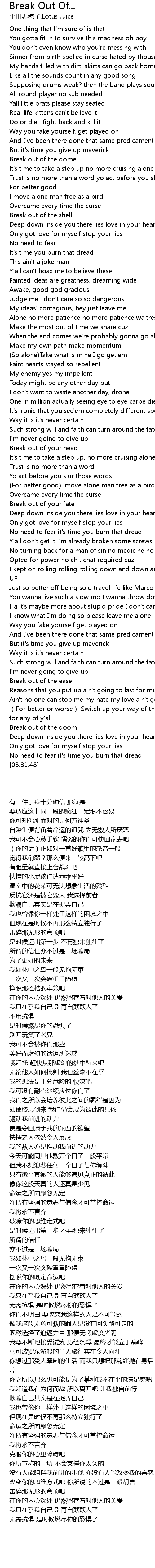 | [03:19.41] | Break out of the doom |
