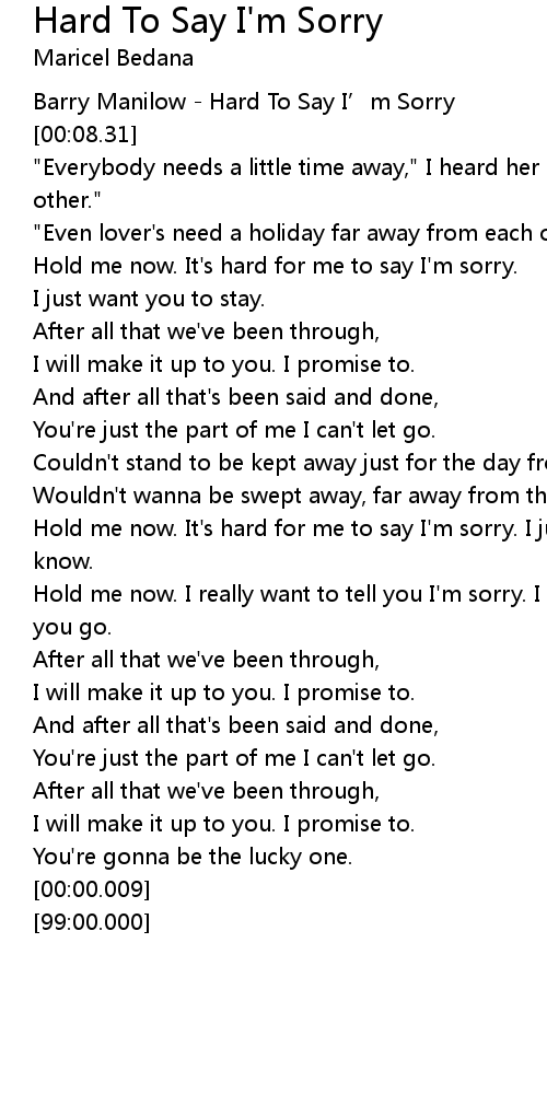 | [00:01.12] | Barry Manilow Hard To Say I' m Sorry |