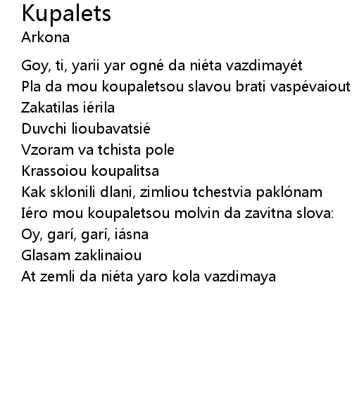 | Song | Kupalets |