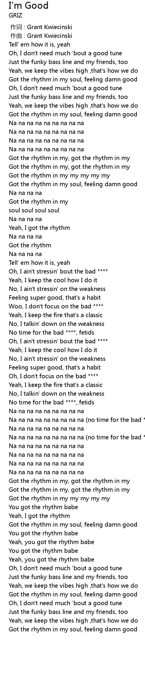 | [02:21.00] | Na na na na na na na na na (no time for the bad ****) |