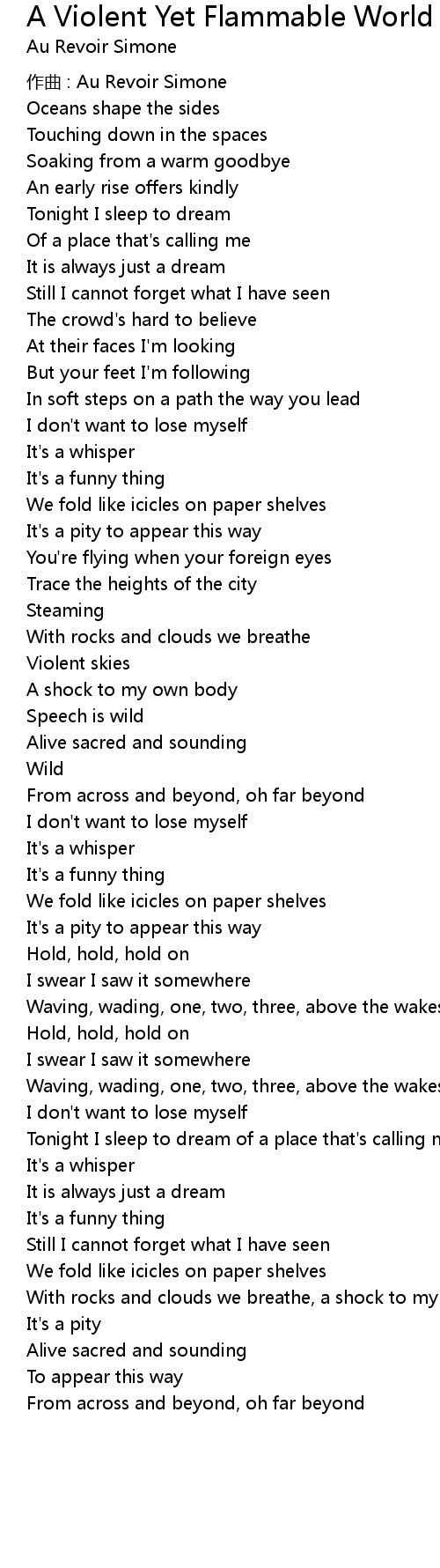 | Waving, wading, one, two, three, above the wakes that follow | |
