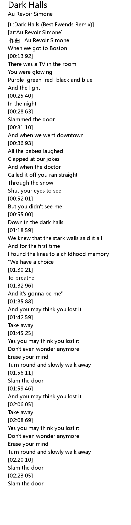 | [ti:Dark Halls (Best Fwends Remix)] | |