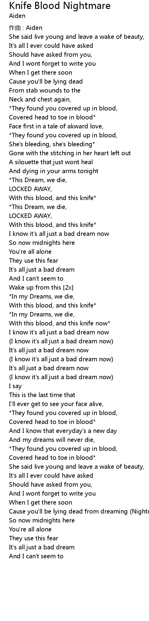 | Song | Knife Blood Nightmare |
