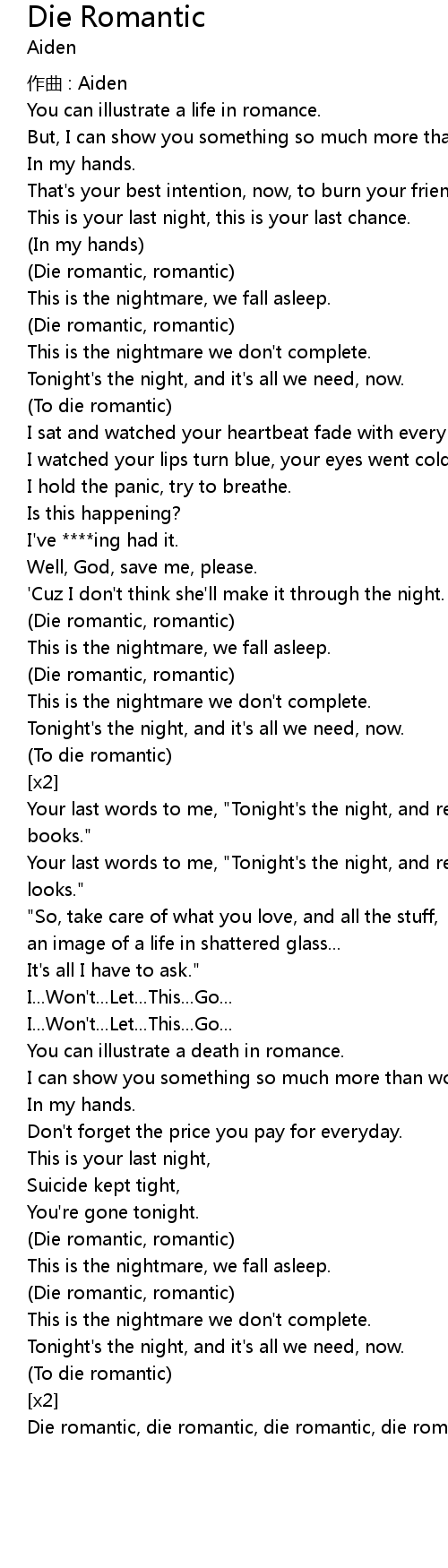 | Die romantic, die romantic, die romantic, die romantic.... |