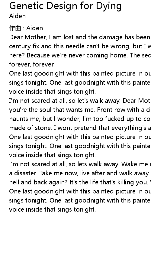 | Song | Genetic Design for Dying |