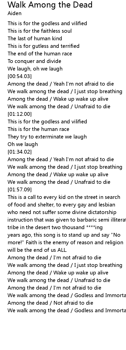 | [00:55.41] | Among the dead / Yeah I'm not afraid to die |