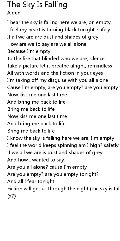 I know the sky is falling here we are, I'm empty |
