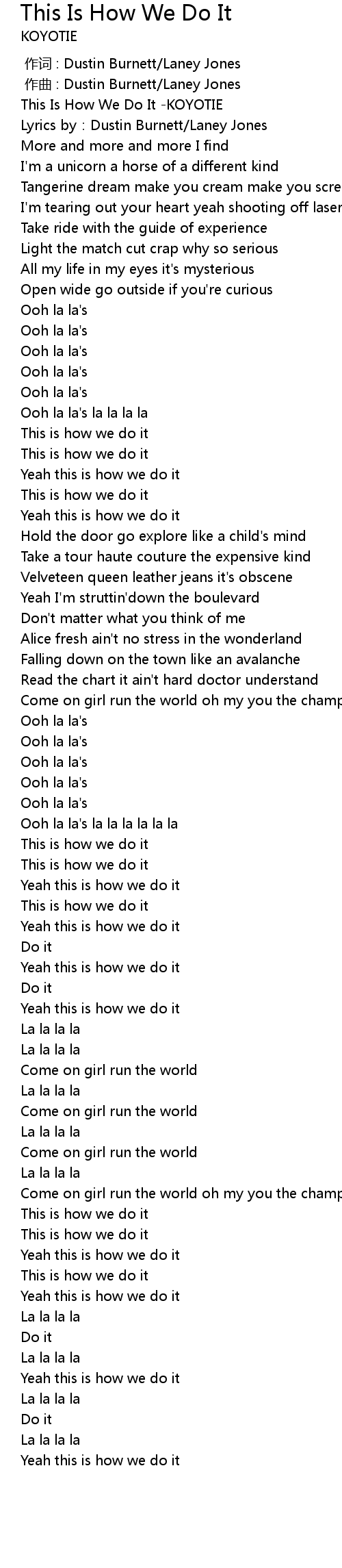 | [00:00.872] | This Is How We Do It KOYOTIE |