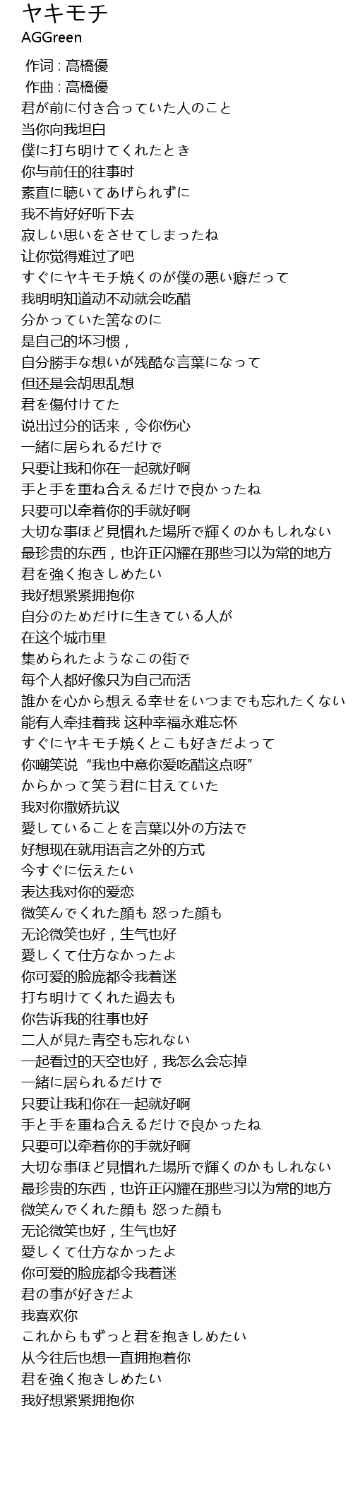 | [02:22.156] | すぐにヤキモチ焼くとこも好きだよって |