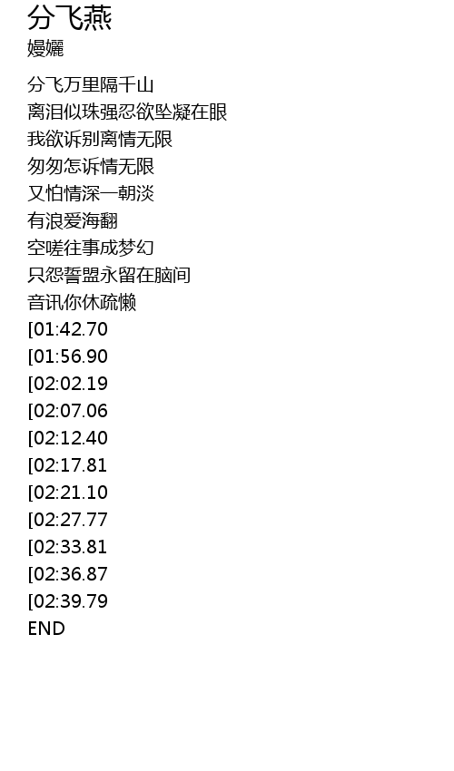 | [03:39.78][02:27.77] | 心声托付鸿与雁 |