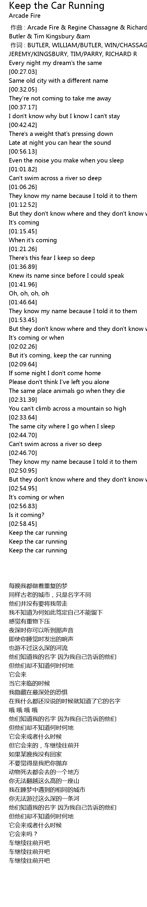 | [03:00.63] | Keep the car running |