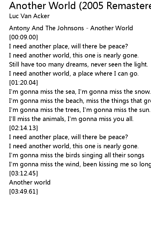 I need another world, a place where I can go. |