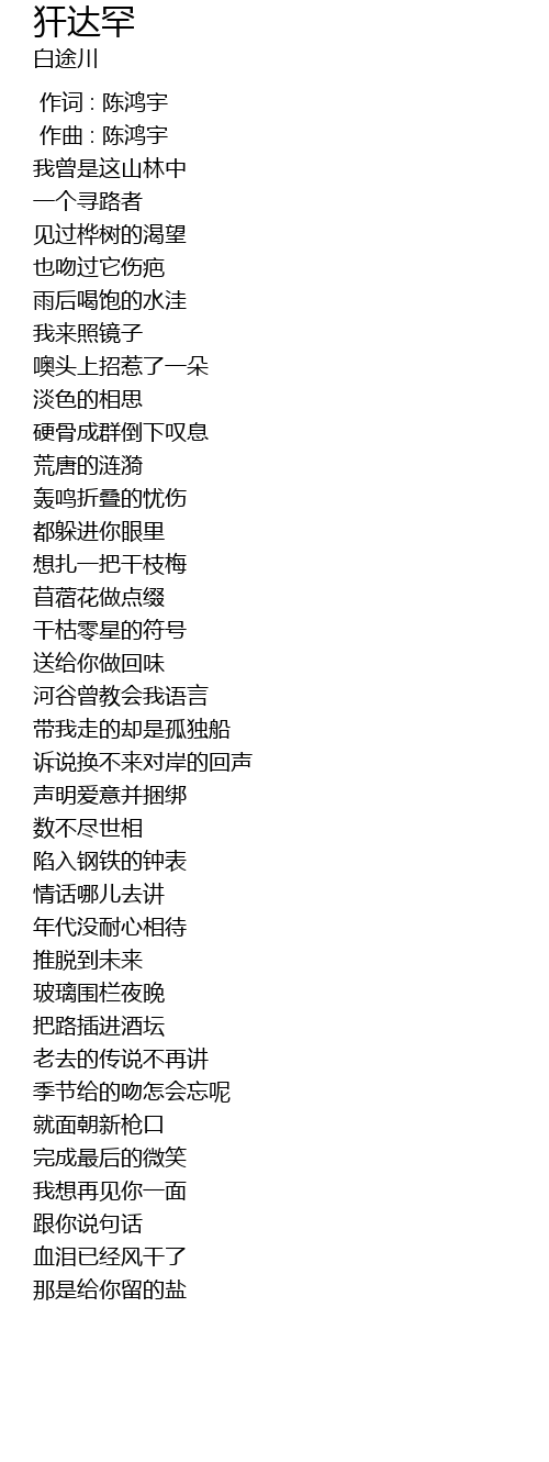 | [00:00.000] | 作词 : 陈鸿宇 |