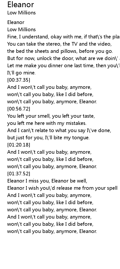 won\'t call you baby, anymore, Eleanor. |