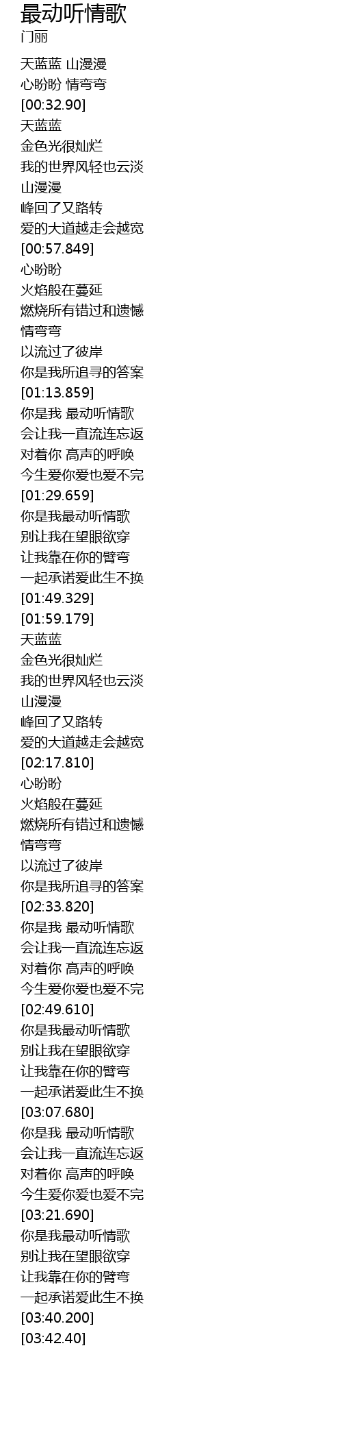 | [03:22.110] | 你是我最动听情歌 |