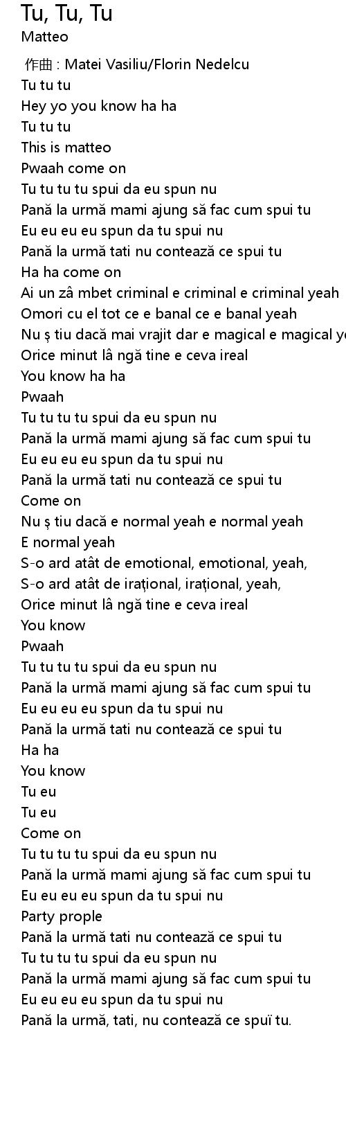 | [02:53.17] | Tu tu tu tu spui da eu spun nu |