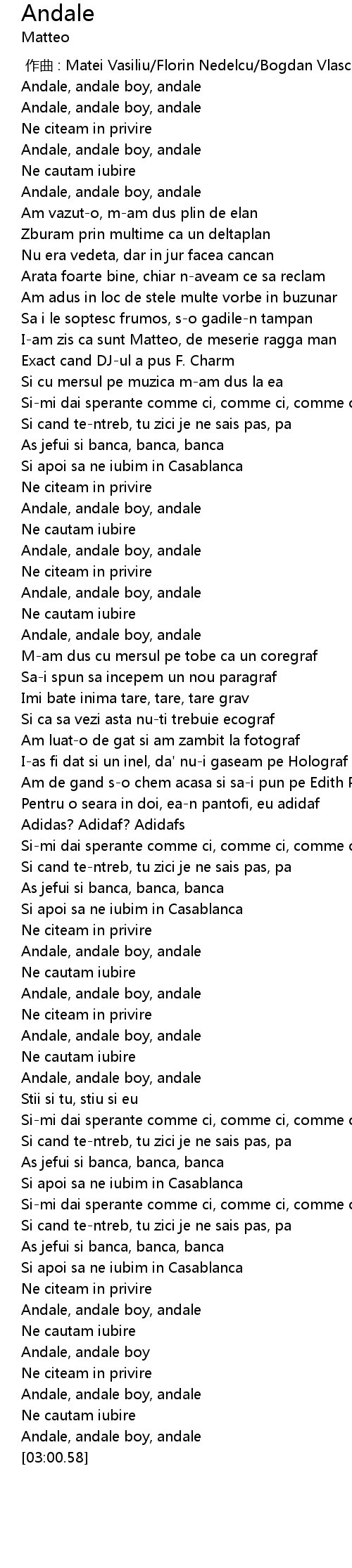 | [02:30.38] | Simi dai sperante comme ci, comme ci, comme a |