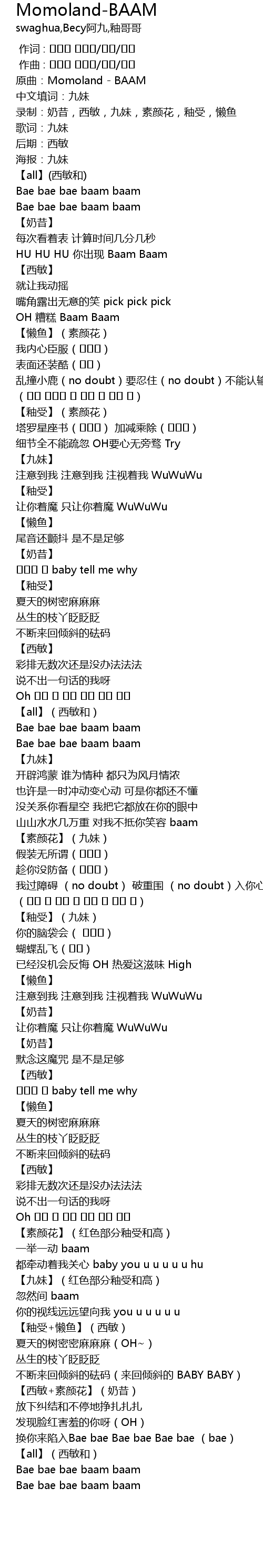 | [00:00.891] | 原曲:Momoland - BAAM |
