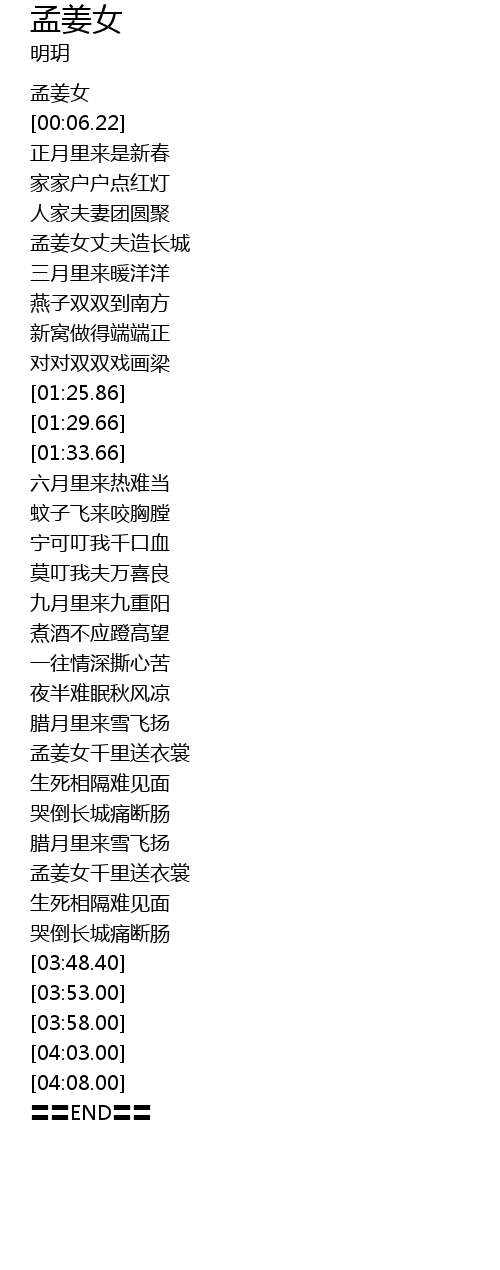 | [00:02.00] | 孟姜女 |