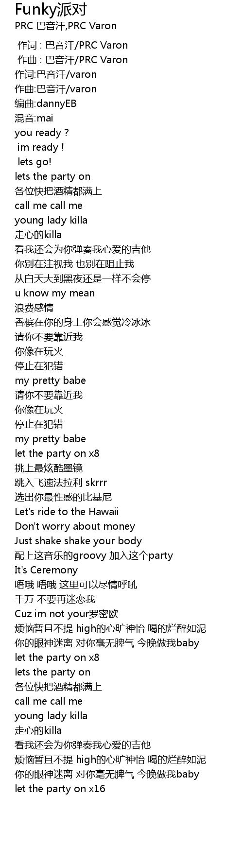 | [00:00.000] | 作词 : 巴音汗/PRC Varon |
