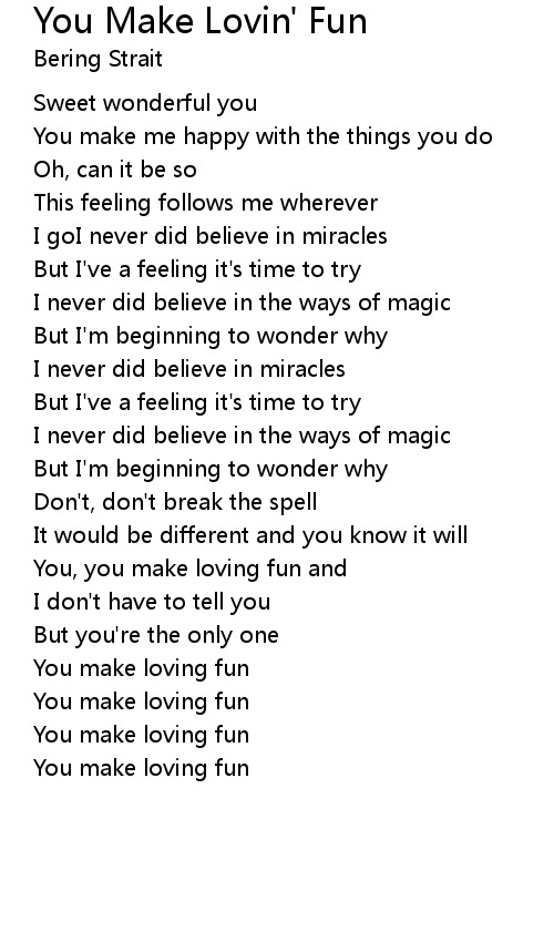 You, you make loving fun and |