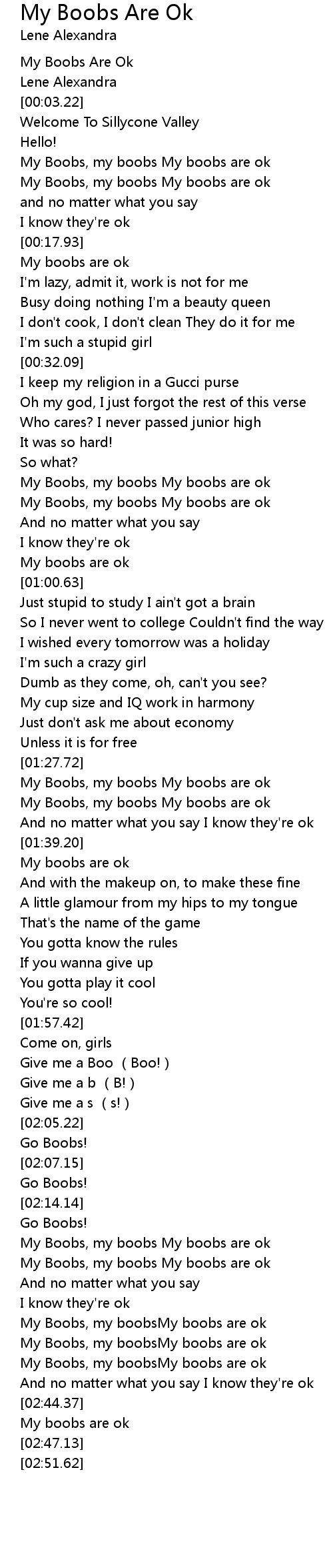 | [02:30.33] | My Boobs, my boobsMy boobs are ok |