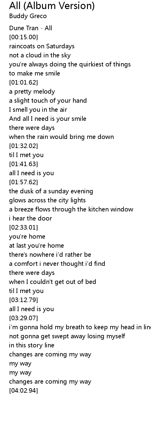 And all I need is your smile |