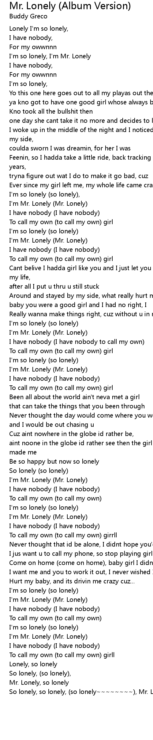 So lonely, so lonely, (so lonely~~~~~~~~), Mr. Lonely |