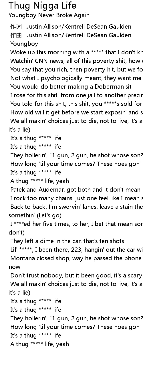 | [01:44.284] | A thug ***** life, yeah |