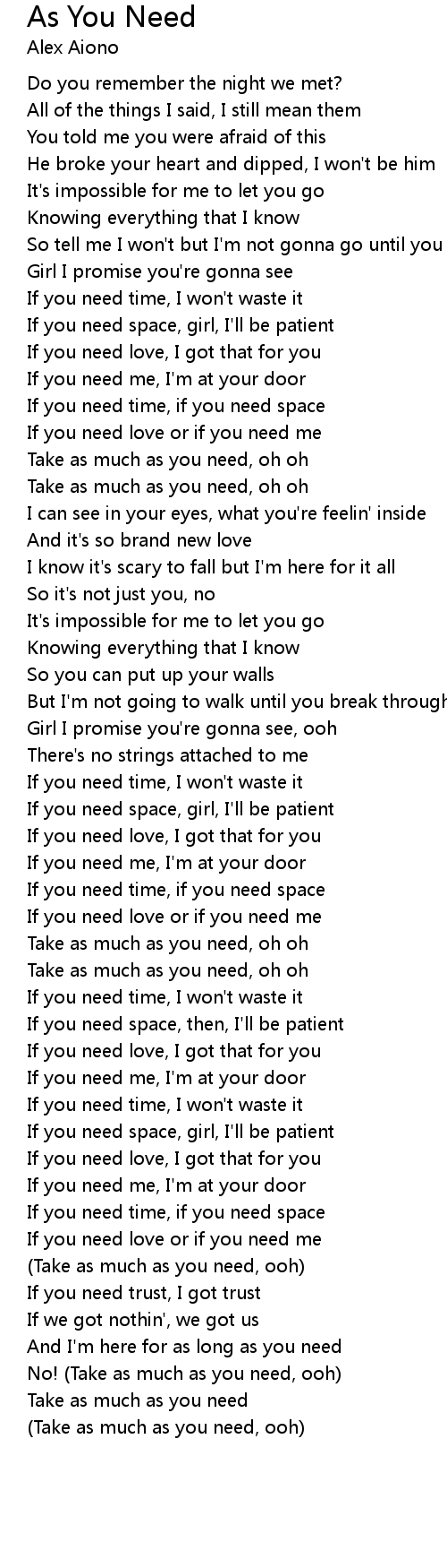 | Song | As You Need |