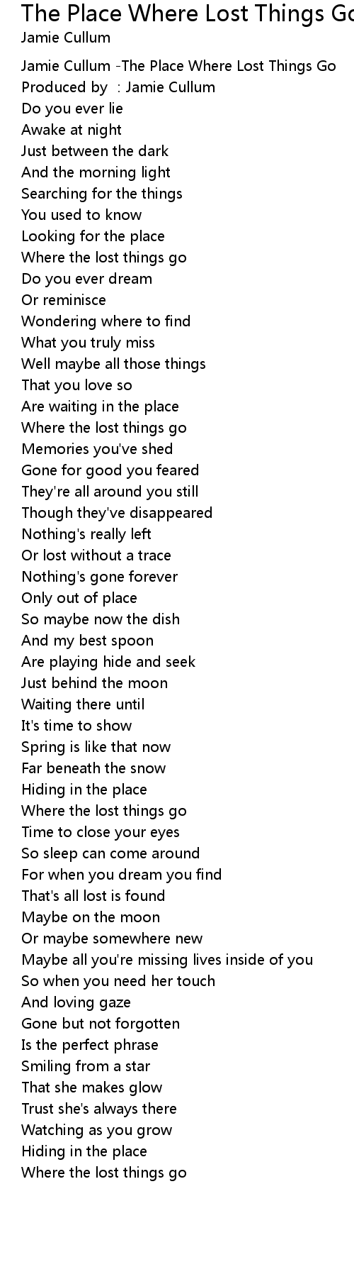 | [00:00.826] | Jamie Cullum The Place Where Lost Things Go |
